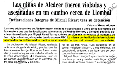 Pero si además, optamos por acudir a las fuentes oficiales -sumario- y recuperamos la primera declaración -la que se podría considerar en la esfera de la psicología del testimonio, como la más íntegra, espontánea o no contaminada- del único condenado por el triple crimen de Alcasser (Miguel Ricart), y reconstruimos los últimos pasos del itinerario narrado, nos encontramos con otra increíble sorpresa.
